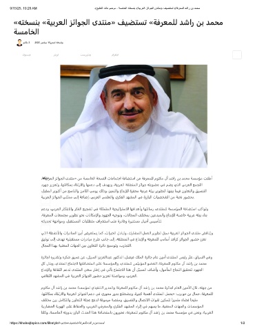 9/15/25, 10:20 AM «ﺞﯾﻠﺧﻟا تﺎﻋوﺿوﻣ - ﺔﺳﻣﺎﺧﻟا ﮫﺗﺧﺳﻧﺑ «ﺔﯾﺑرﻌﻟا زﺋاوﺟﻟا ىدﺗﻧﻣ» فﯾﺿﺗﺳﺗ «ﺔﻓرﻌﻣﻠﻟ دﺷار نﺑ دﻣﺣﻣ