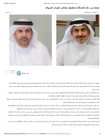 9/15/25, 10:18 AM «ﺞﯾﻠﺧﻟا ﺔﻔﯾﺣﺻ | «ﺔﯾﺑرﻌﻟا زﺋاوﺟﻟا ىدﺗﻧﻣ» فﯾﺿﺗﺳﺗ «ﺔﻓرﻌﻣﻠﻟ دﺷار نﺑ دﻣﺣﻣ