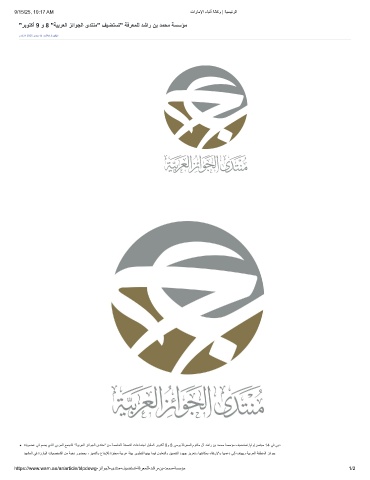 ﮫﺗﯾوﺿﻋ ﻲﻓ مﺿﯾ يذﻟا ﻲﺑرﻌﻟا ﻊﻣﺟﺗﻟا "ﺔﯾﺑرﻌﻟا زﺋاوﺟﻟا ىدﺗﻧﻣ" نﻣ ﺔﺳﻣﺎﺧﻟا ﺔﺧﺳﻧﻟا تﺎﻋﺎﻣﺗﺟا لﺑﻘﻣﻟا رﺑوﺗﻛأ 9و 8 ﻲﻣوﯾ ﺔﻓرﻌﻣﻠﻟ موﺗﻛﻣ لآ دﺷار نﺑ دﻣﺣﻣ ﺔﺳﺳؤﻣ فﯾﺿﺗﺳﺗ /ماو/رﺑﻣﺗﺑﺳ 14 ﻲﻓ ﻲﺑد