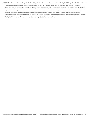 9/30/25, 1:13 PM Arab knowledge stakeholders highlight the importance of monitoring indices in accelerating the 2030 Agenda for Sustainable Devel…