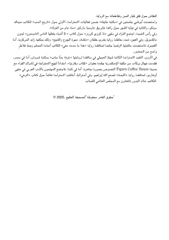 ﻊﻣ ءاﺮﻘﻟا كاﺮﺷإ ﻓ ﺔﺣاﺮﺘﺳﻻا ﺞﻬﻨﻟ ًاداﺪﺘﻣا ،«ئرﺎﻗو بﺎﺘﻛ» ناﻮﻨﻌﺑ ﺔﺴﻠﺟ ﺔﻳرﺪﻨﺳﻹا ﺔﺒﺘﻣ ﻦﻣ تﺎﻛﺮﺑ لﺎﻬﻴﻧ ﺖﻣﺪﻘﻓ