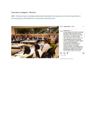 Publication: Instagram – Mid East Link: Mid East: Arab knowledge stakeholders highlight the importance of monitoring indices in accelerating the 2030 Agenda for Sustainable Development