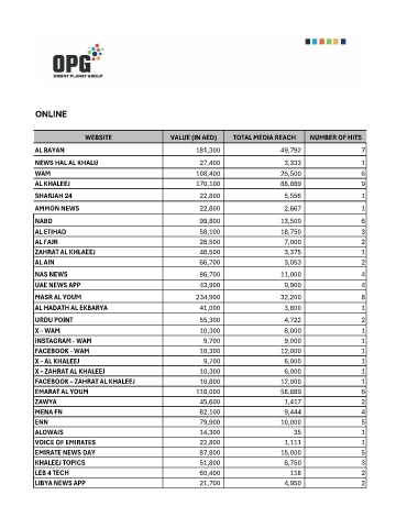 WEBSITE VALUE (IN AED) TOTAL MEDIA REACH NUMBER OF HITS