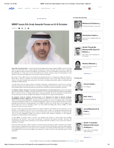 MBRF hosts 5th Arab Awards Forum on 89 October Mohamed Al Hashemi