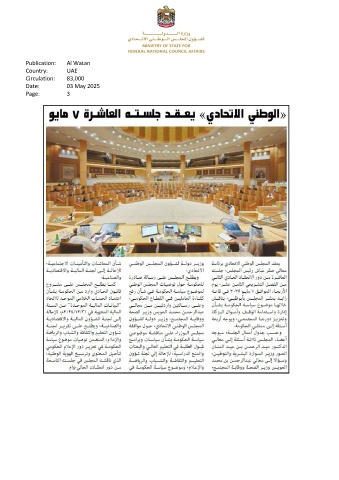 Publication: Al Watan Country: UAE Circulation: 83,000 Date: 03 May 2025 Page: 3