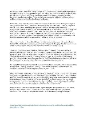 investments and recognized the World Realty Congress as a key initiative driving excellence