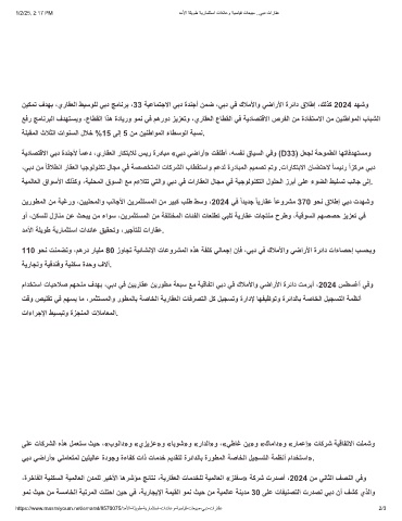 1/2/25, 2:17 PM دﻣﻷا ﺔﻠﯾوط ﺔﯾرﺎﻣﺛﺗﺳا تادﺋﺎﻋو ﺔﯾﺳﺎﯾﻗ تﺎﻌﯾﺑﻣ ..ﻲﺑد تارﺎﻘﻋ