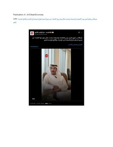 Publication: X – Al Etihad Economy Link: ةدعاولا قافلآاو تاراملإا يف ةحايسلا عاطق راهدزا ةريسم نع "داحتلاا" عم راوح للاخ ثدحتي ،ةحايسلاو داصتقلاا ريزو ،يرلما قوط نب اللهدبع ومنلل