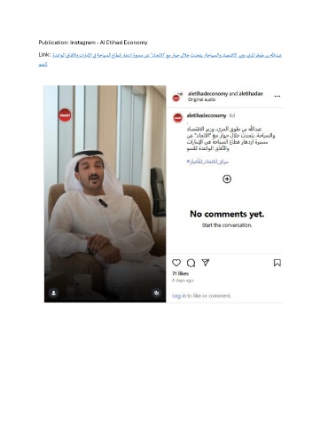 Publication: Instagram - Al Etihad Economy Link: ةدعاولا قافلآاو تاراملإا يف ةحايسلا عاطق راهدزا ةريسم نع "داحتلاا" عم راوح للاخ ثدحتي ،ةحايسلاو داصتقلاا ريزو ،يرلما قوط نب اللهدبع ومنلل