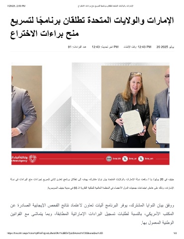 ﺔﻟود ﻲﻓ تاءارﺑﻟا ﺢﻧﻣ تاءارﺟإ ﻊﯾرﺳﺗﻟ ﻲﺋﺎﻧﺛ نوﺎﻌﺗ ﺞﻣﺎﻧرﺑ قﻼطإ ﻰﻟإ فدﮭﯾ ،كرﺗﺷﻣ ﺎﯾاوﻧ نﺎﯾﺑ ةدﺣﺗﻣﻟا تﺎﯾﻻوﻟاو تارﺎﻣﻹا ﺔﻟود تﻌﻗو / ﺎﻧﺑ /وﯾﻟوﯾ 20 ﻲﻓ فﯾﻧﺟ