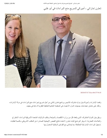 ،تارﺎﻣﻹا ﺔﻟود ﻲﻓ تاءاﺮﺒﻟا ﺢﻨﻣ تاءاﺮﺟإ ﻊﯾﺮﺴﺗ ﻞﺟأ ﻦﻣ ﻲﺋﺎﻨﺛ نوﺎﻌﺗ ﺞﻣﺎﻧﺮﺑ ﺲﯿﺳﺄﺘﻟ ،كﺮﺘﺸﻣ ﺎﯾاﻮﻧ نﺎﯿﺑ ﺎﻛﺮﯿﻣأو تارﺎﻣﻹا ﺖﻌﻗو