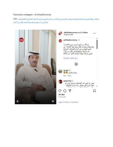Publication: Instagram – Al Etihad Economy Link: اهعافتراو ةلودلا يف ةلماعلا تاكرشلا دادعأ يف ي سايقلا ومنلا نع "داحتلاا" عم راوح للاخ ثدحتي ،ةحايسلاو داصتقلاا ريزو ،يرلما قوط نب اللهدبع 2025 نم لولأا فصنلا ةياهنب ةكرش نويلم 1.35 نم رثكأ ىلإ