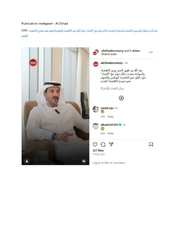 Publication: Instagram - Al Etihad Link: داصتقلاا جذومن وحن لوحتلاو ينطولا داصتقلاا ومن قافآ لوح "داحتلاا" عم راوح للاخ ثدحتي ةحايسلاو داصتقلاا ريزو يرلما قوط نب الله دبع ديدجلا