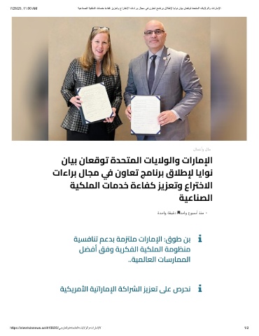 7/28/25, 11:00 AM ﺔﯾﻋﺎﻧﺻﻟا ﺔﯾﻛﻠﻣﻟا تﺎﻣدﺧ ةءﺎﻔﻛ زﯾزﻌﺗو عارﺗﺧﻻا تاءارﺑ لﺎﺟﻣ ﻲﻓ نوﺎﻌﺗ ﺞﻣﺎﻧرﺑ قﻼطﻹ ﺎﯾاوﻧ نﺎﯾﺑ نﺎﻌﻗوﺗ ةدﺣﺗﻣﻟا تﺎﯾﻻوﻟاو تارﺎﻣﻹا