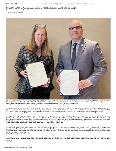 7/28/25, 11:02 AM 7 تارﺎﻣﻻا | لﺎﻣﻋا و دﺎﺻﺗﻗا | عارﺗﺧﻻا تاءارﺑ ﺢﻧﻣ ﻊﯾرﺳﺗﻟ ﺎﺟﻣﺎﻧرﺑ نﺎﻘﻠطﺗ ةدﺣﺗﻣﻟا تﺎﯾﻻوﻟاو تارﺎﻣﻹا