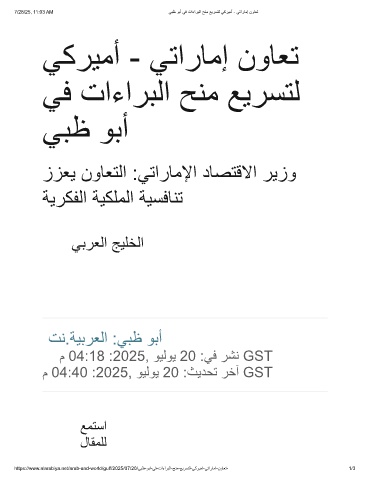 https://www.alarabiya.net/arab-and-world/gulf/2025/07/20/ﻲﺑظ-وﺑا-ﻲﻓ-تاءارﺑﻟا-ﺢﻧﻣ-ﻊﯾرﺳﺗﻟ-ﻲﻛرﯾﻣا-ﻲﺗارﺎﻣا-نوﺎﻌﺗ- 1/3
