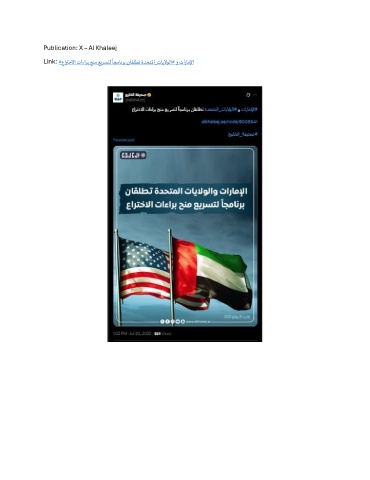 Publication: X – Al Khaleej ً Link: #عارتخلاا تاءارب حنم عيرستل اجمانرب ناقلطت ةدحتلما_تايلاولا# و تاراملإا