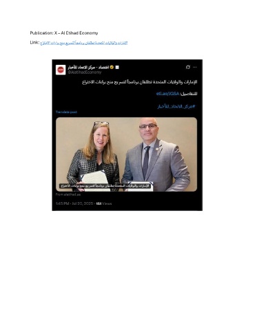Publication: X – Al Etihad Economy ً Link: عارتخلاا تاءارب حنم عيرستل اجمانرب ناقلطت ةدحتلما تايلاولاو تاراملإا