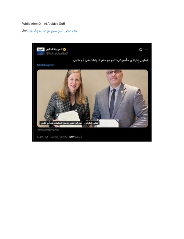 Publication: X – Al Arabiya Gulf Link: يبظ وبأ يف تاءاربلا حنم عيرستل يكريمأ - يتارامإ نواعت