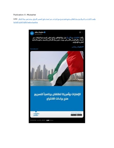 Publication: X - Mubasher ّ ّ ُ Link: راكتبلاا ةئيب زيزعت فدهب ،يكيرملأا صحفلا جئاتن دامتعا ربع ،تاءاربلا حنم عرسي نواعت جمانرب قلاطلإ اياون نايب اكيرمأ# و تاراملإا# تعقو ةيتاراملإا ةيركفلا ةيكللما ةموظنم ةيسفانتو.