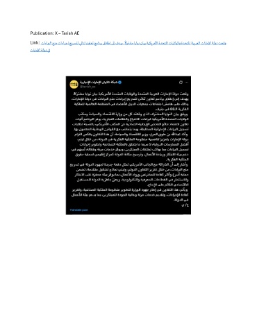 Publication: X – Tarish AE ً Link: تاءاربلا حنم تاءارجإ عيرستل يئانث نواعت جمانرب قلاطإ ىلإ فدهي ،اكرتشم اياون نايب ةيكيرملأا ةدحتلما تايلاولاو ةدحتلما ةيبرعلا تاراملإا ةلود تعقو تاراملإا ةلود يف