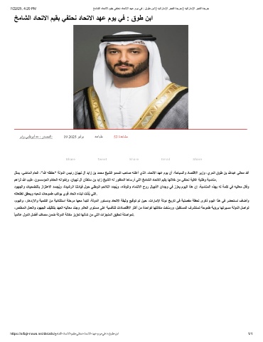 لﺛﻣﯾ ،ﻲﺿﺎﻣﻟا مﺎﻌﻟا ،”ﷲ ﮫظﻔﺣ“ ﺔﻟودﻟا سﯾﺋر نﺎﯾﮭﻧ لآ دﯾاز نﺑ دﻣﺣﻣ ﺦﯾﺷﻟا وﻣﺳﻟا بﺣﺎﺻ ﮫﻧﻠﻋأ يذﻟا ،دﺎﺣﺗﻻا دﮭﻋ موﯾ نأ ،ﺔﺣﺎﯾﺳﻟاو دﺎﺻﺗﻗﻻا رﯾزو ،يرﻣﻟا قوط نﺑ ﷲدﺑﻋ ﻲﻟﺎﻌﻣ دﻛأ