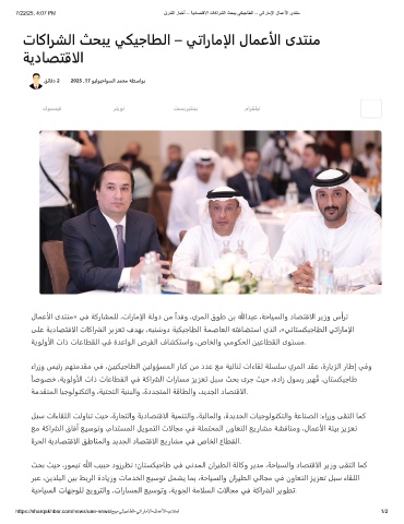 https://sharqakhbar.com/news/uae-news/ﺢﺑﯾ-ﻲﻛﯾﺟﺎطﻟا-ﻲﺗارﺎﻣﻹا-لﺎﻣﻋﻷا-ىدﺗﻧﻣ/ 1/2