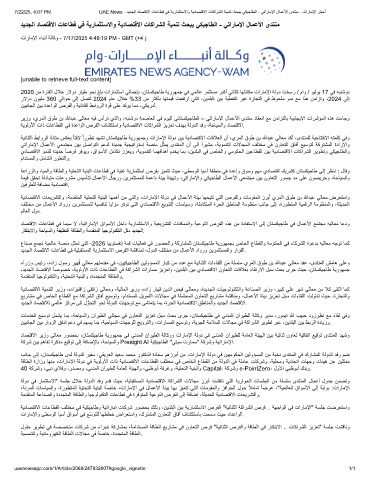 7/22/25, 4:07 PM UAE News - دﯾدﺟﻟا دﺎﺻﺗﻗﻻا تﺎﻋﺎطﻗ ﻲﻓ ﺔﯾرﺎﻣﺛﺗﺳﻻاو ﺔﯾدﺎﺻﺗﻗﻻا تﺎﻛارﺷﻟا ﺔﯾﻣﻧﺗ ثﺣﺑﯾ ﻲﻛﯾﺟﺎطﻟا - ﻲﺗارﺎﻣﻹا لﺎﻣﻋﻷا ىدﺗﻧﻣ - تارﺎﻣﻹا رﺎﺑﺧأ