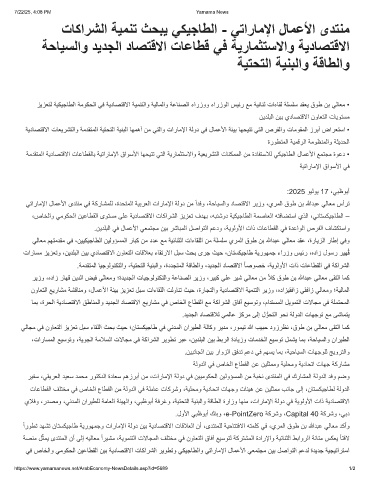 ﻲﺗارﺎﻣﻹا لﺎﻣﻋﻷا ىدﺗﻧﻣ ﻲﻓ ﺔﻛرﺎﺷﻣﻠﻟ ،ةدﺣﺗﻣﻟا ﺔﯾﺑرﻌﻟا تارﺎﻣﻹا ﺔﻟود نﻣ ًادﻓو ،ﺔﺣﺎﯾﺳﻟاو دﺎﺻﺗﻗﻻا رﯾزو ،يرﻣﻟا قوط نﺑ ﷲدﺑﻋ ﻲﻟﺎﻌﻣ سأرﺗ