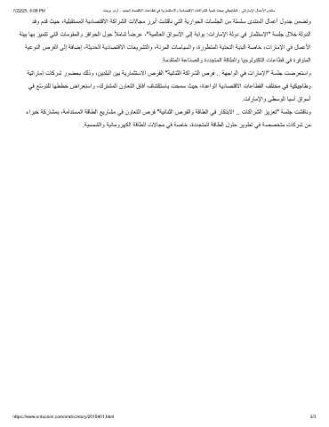 ﺔﺋﯾﺑ ﺎﮭﺑ زﯾﻣﺗﺗ ﻲﺗﻟا تﺎﻣوﻘﻣﻟاو زﻓاوﺣﻟا لوﺣ ًﻼﻣﺎﺷ ً ﺎﺿرﻋ ،"ﺔﯾﻣﻟﺎﻌﻟا قاوﺳﻷا ﻰﻟإ ﺔﺑاوﺑ :تارﺎﻣﻹا ﺔﻟود ﻲﻓ رﺎﻣﺛﺗﺳﻻا" ﺔﺳﻠﺟ لﻼﺧ ﺔﻟودﻟا