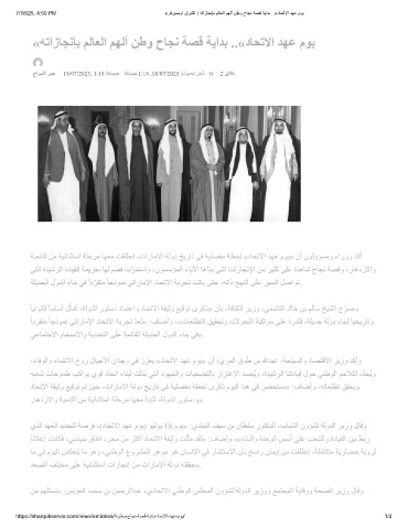 دﺎﺤﺗﻻا ﺔﻘﯿﺛو ﻊﯿﻗﻮﺗ ﻢﺗ ﻦﯿﺣ ،تارﺎﻣﻹا ﺔﻟود ﺦﯾرﺎﺗ ﻲﻓ ﺔﯿﻠﺼﻔﻣ ﺔﻈﺤﻟ ىﺮﻛذ مﻮﯿﻟا اﺬھ ﻲﻓ ﺮﻀﺤﺘﺴﻧ» :فﺎﺿأو ،ﮫﺗﺎﻌﻠﻄﺗ ﻖﻘﺤﯾو