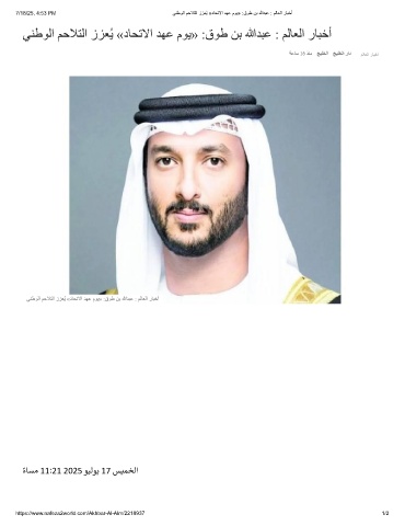 7/18/25, 4:53 PM ﻲﻧطوﻟا مﺣﻼﺗﻟا ززﻌُﯾ «دﺎﺣﺗﻻا دﮭﻋ موﯾ» :قوط نﺑ ﷲدﺑﻋ : مﻟﺎﻌﻟا رﺎﺑﺧأ