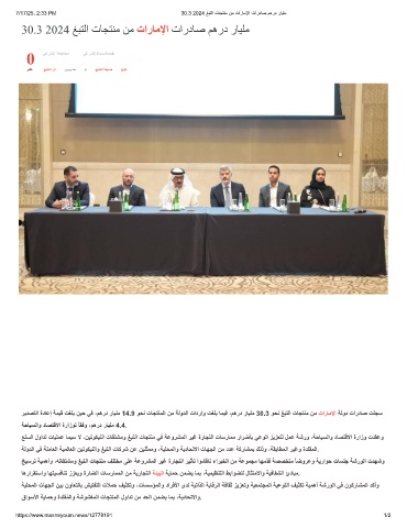 7/17/25, 2:33 PM 30.3 2024 ﻎﺑﺗﻟا تﺎﺟﺗﻧﻣ نﻣ تارﺎﻣﻹا تاردﺎﺻ مھرد رﺎﯾﻠﻣ