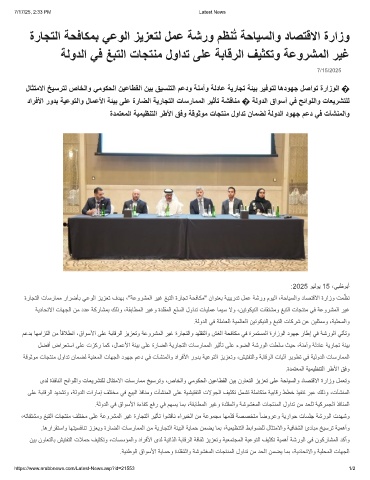 ةرﺎﺟﺗﻟا تﺎﺳرﺎﻣﻣ رارﺿﺄﺑ ﻲﻋوﻟا زﯾزﻌﺗ فدﮭﺑ ،"ﺔﻋورﺷﻣﻟا رﯾﻏ ﻎﺑﺗﻟا ةرﺎﺟﺗ ﺔﺣﻓﺎﻛﻣ" ناوﻧﻌﺑ ﺔﯾﺑﯾردﺗ لﻣﻋ ﺔﺷرو موﯾﻟا ،ﺔﺣﺎﯾﺳﻟاو دﺎﺻﺗﻗﻻا ةرازو تﻣظﻧ