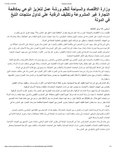 رارﺿﺄﺑ ﻲﻋوﻟا زﯾزﻌﺗ فدﮭﺑ ،"ﺔﻋورﺷﻣﻟا رﯾﻏ ﻎﺑﺗﻟا ةرﺎﺟﺗ ﺔﺣﻓﺎﻛﻣ" ناوﻧﻌﺑ ﺔﯾﺑﯾردﺗ لﻣﻋ ﺔﺷرو موﯾﻟا ،ﺔﺣﺎﯾﺳﻟاو دﺎﺻﺗﻗﻻا ةرازو تﻣظﻧ