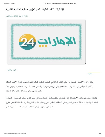 7/17/25, 2:15 PM 24 تارﺎﻣﻹا | ﺔﯾرﻛﻔﻟا ﺔﯾﻛﻠﻣﻟا ﺔﯾﺎﻣﺣ زﯾزﻌﺗ وﺣﻧ تاوطﺧ ذﺧﺗﺗ تارﺎﻣﻹا