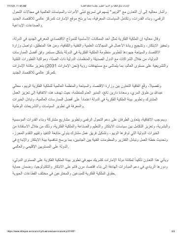 7/17/25, 11:48 AM ﺔﯾرﻛﻔﻟا ﺔﯾﻛﻠﻣﻟا ﺔﻣوظﻧﻣ رﯾوطﺗﻟ "وﺑﯾوﻟا" ﻊﻣ ﺔﯾﻗﺎﻔﺗا ﻊ ّ ﻗوﺗ تارﺎﻣﻹا