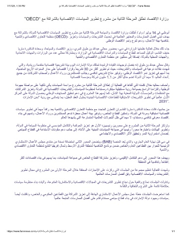 7/17/25, 1:34 PM ﻊﻣ ﺔﻛارﺷﻟﺎﺑ ﺔﯾدﺎﺻﺗﻗﻻا تﺎﺳﺎﯾﺳﻟا رﯾوطﺗ عورﺷﻣ نﻣ ﺔﯾﻧﺎﺛﻟا ﺔﻠﺣرﻣﻟا ﻖﻠطﺗ دﺎﺻﺗﻗﻻا ةرازو "OECD" - Fana News