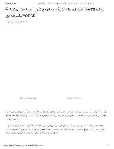 7/17/25, 1:34 PM ﻊﻣ ﺔﻛارﺷﻟﺎﺑ ﺔﯾدﺎﺻﺗﻗﻻا تﺎﺳﺎﯾﺳﻟا رﯾوطﺗ عورﺷﻣ نﻣ ﺔﯾﻧﺎﺛﻟا ﺔﻠﺣرﻣﻟا ﻖﻠطﺗ دﺎﺻﺗﻗﻻا ةرازو “OECD” – مﻼﺳﻟا ﺔﻟﺎﺳر