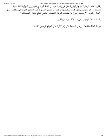."ﺔﯿﻗاﺪﺼﻤﻟاو ﺔﻘﺜﻟﺎﺑ ﻊﺘﻤﺘﯾ ﻲﻤﻟﺎﻋ يدﺎﺼﺘﻗا ﺰﻛﺮﻤﻛ ﺎﮭﺘﻧﺎﻜﻣ ﻦﻣ زﺰﻌﯾو ،بﺎھرﻹا ﻞﯾﻮﻤﺗو لاﻮﻣﻷا