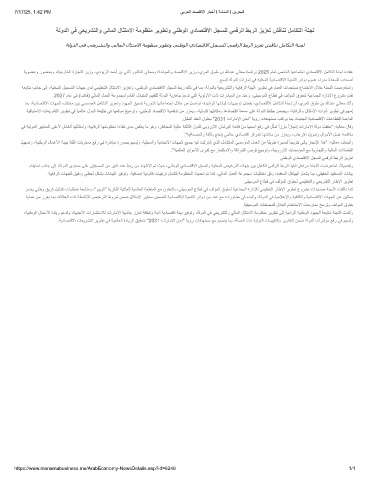 ﺔﻟوﺪﻟا ﻲﻓ ﻲﻌﻳﺮﺸﺘﻟاو ﻲﻟﺎﻤﻟا لﺎﺜﺘﻣﻻا ﺔﻣﻮﻈﻨﻣ ﺮﻳﻮﻄﺗو ﻲﻨطﻮﻟا يدﺎﺼﺘﻗﻻا ﻞﺠﺴﻠﻟ ﻲﻤﻗﺮﻟا ﻂﺑﺮﻟا ﺰﻳﺰﻌﺗ ﺶﻗﺎﻨﺗ ﻞﻣﺎﻜﺘﻟا ﺔﻨﺠﻟ