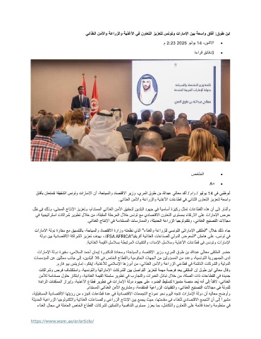 تاراملإا ةلود ةرافس عم قيسنتلاب ،ةحايسلاو داصتقلاا ةرازو هتمظن يذلا "ءاذغلاو ةعارزلل يسنوتلا يتاراملإا ىقتلملا" للاخ كلذ ءاج