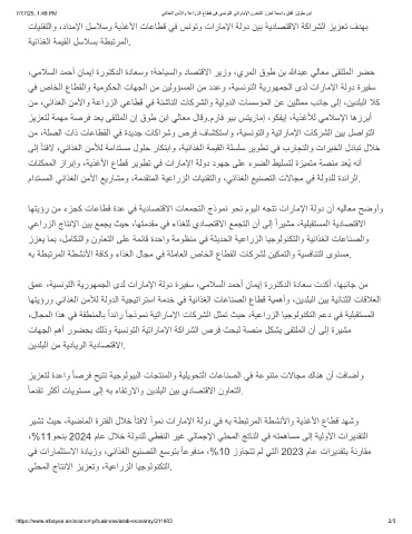 7/17/25, 1:48 PM ﻲﺋاذﻐﻟا نﻣﻷاو ﺔﻋارزﻟا عﺎطﻗ ﻰﻓ ﻲﺳﻧوﺗﻟا ﻲﺗارﺎﻣﻹا نوﺎﻌﺗﻟا ززﻌﺗ ﺔﻌﺳاو قﺎﻓآ :قوط نﺑا
