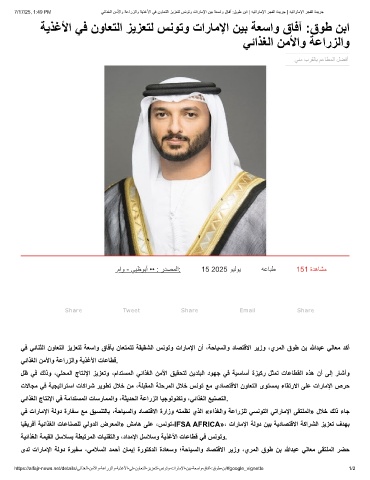 7/17/25, 1:49 PM ﻲﺋاذﻐﻟا نﻣﻷاو ﺔﻋارزﻟاو ﺔﯾذﻏﻷا ﻲﻓ نوﺎﻌﺗﻟا زﯾزﻌﺗﻟ سﻧوﺗو تارﺎﻣﻹا نﯾﺑ ﺔﻌﺳاو قﺎﻓآ :قوط نﺑا | ﮫﯾﺗارﺎﻣﻹا رﺟﻔﻟا ةدﯾرﺟ | ﮫﯾﺗارﺎﻣﻹا رﺟﻔﻟا ةدﯾرﺟ