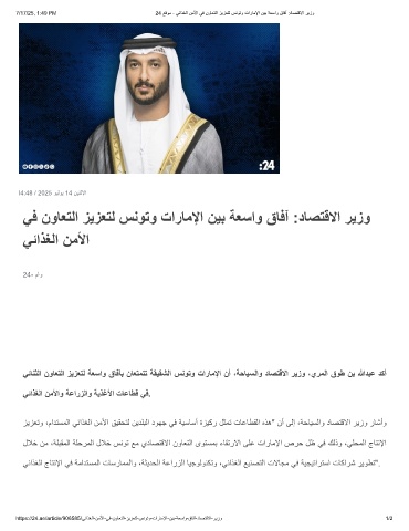 7/17/25, 1:49 PM 24 ﻊﻗوﻣ - ﻲﺋاذﻐﻟا نﻣﻷا ﻲﻓ نوﺎﻌﺗﻟا زﯾزﻌﺗﻟ سﻧوﺗو تارﺎﻣﻹا نﯾﺑ ﺔﻌﺳاو قﺎﻓآ :دﺎﺻﺗﻗﻻا رﯾزو