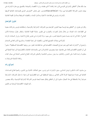 ﻲﻓ تارﺎﻣﻹا ةرﺎﻔﺳ ﻊﻣ ﻖﯾﺳﻧﺗﻟﺎﺑ ،ﺔﺣﺎﯾﺳﻟاو دﺎﺻﺗﻗﻻا ةرازو ﮫﺗﻣظﻧ يذﻟا "ءاذﻐﻟاو ﺔﻋارزﻠﻟ ﻲﺳﻧوﺗﻟا ﻲﺗارﺎﻣﻹا ﻰﻘﺗﻠﻣﻟا" لﻼﺧ كﻟذ ءﺎﺟ