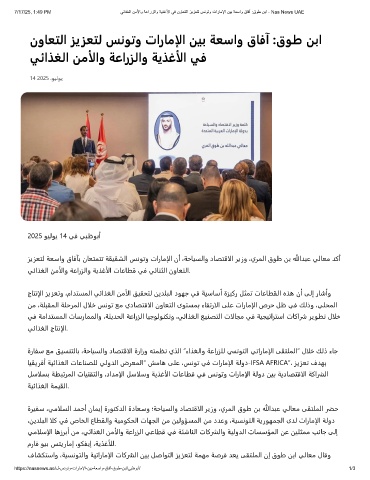 7/17/25, 1:49 PM ﻲﺋاذﻐﻟا نﻣﻷاو ﺔﻋارزﻟاو ﺔﯾذﻏﻷا ﻲﻓ نوﺎﻌﺗﻟا زﯾزﻌﺗﻟ سﻧوﺗو تارﺎﻣﻹا نﯾﺑ ﺔﻌﺳاو قﺎﻓآ :قوط نﺑا - Nas News UAE