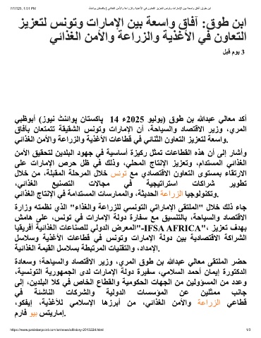 ةرازو ﮫﺘﻤﻈﻧ يﺬﻟا "ءاﺬﻐﻟاو ﺔﻋارﺰﻠﻟ ﻲﺴﻧﻮﺘﻟا ﻲﺗارﺎﻣﻹا ﻰﻘﺘﻠﻤﻟا" لﻼﺧ ﻚﻟذ ءﺎﺟ