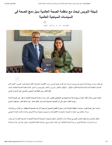 7/17/25, 2:04 PM ﺔﯾﻣﻟﺎﻌﻟا ﺔﯾﺣﺎﯾﺳﻟا تﺎﺳﺎﯾﺳﻟا ﻲﻓ ﺔﺣﺻﻟا ﺞﻣد لﺑﺳ ﺔﯾﻣﻟﺎﻌﻟا ﺔﺣﺻﻟا ﺔﻣظﻧﻣ ﻊﻣ ثﺣﺑﺗ سﯾوﻧﻟا ﺔﺧﯾﺷ - SEYYAHA