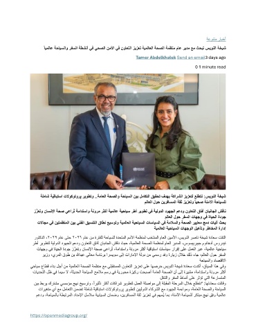 ايملاع ةحايسلاو رفسلا ةطشنأ يف يحصلا نملأا يف نواعتلا زيزعت ةيملاعلا ةحصلا ةمظنم ماع ريدم عم ثحبت سيونلا ةخيش